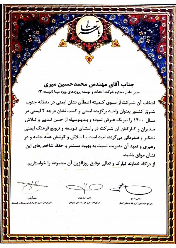 دریافت نشان برتر ایمنی در پروژه برق و بخار مکران
